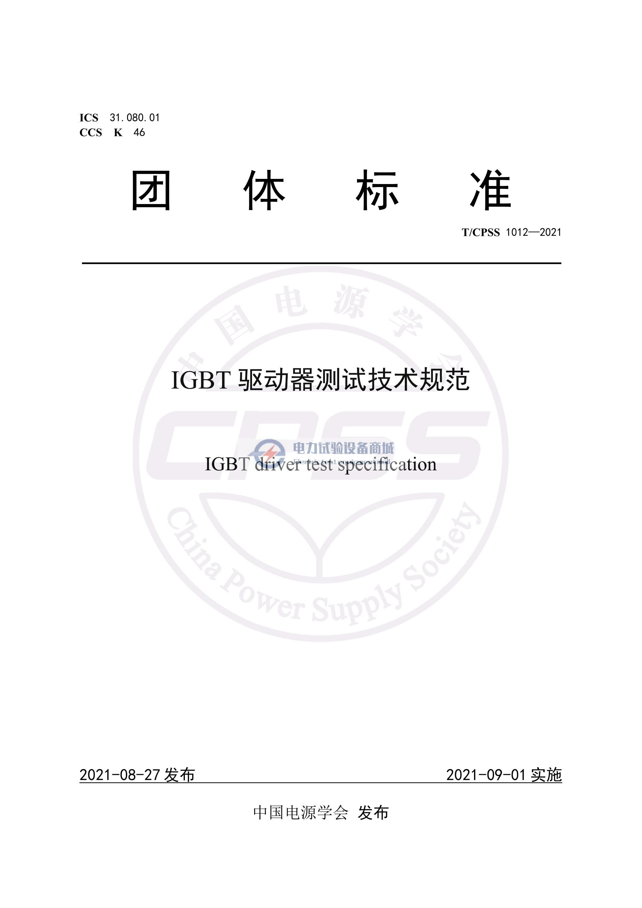T/CPSS 1012-2021 IGBT驱动器测试技术规范