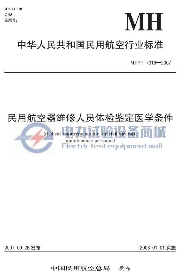 MH/T 7016-2007 民用航空器维修人员体检鉴定医学条件