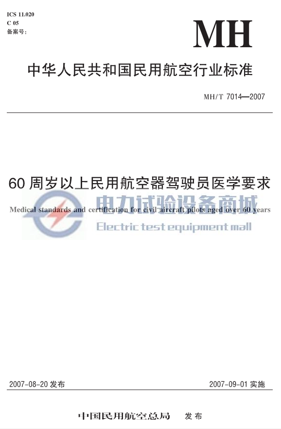 MHT 7014-2007 60周岁以上民用航空器驾驶员医学要求