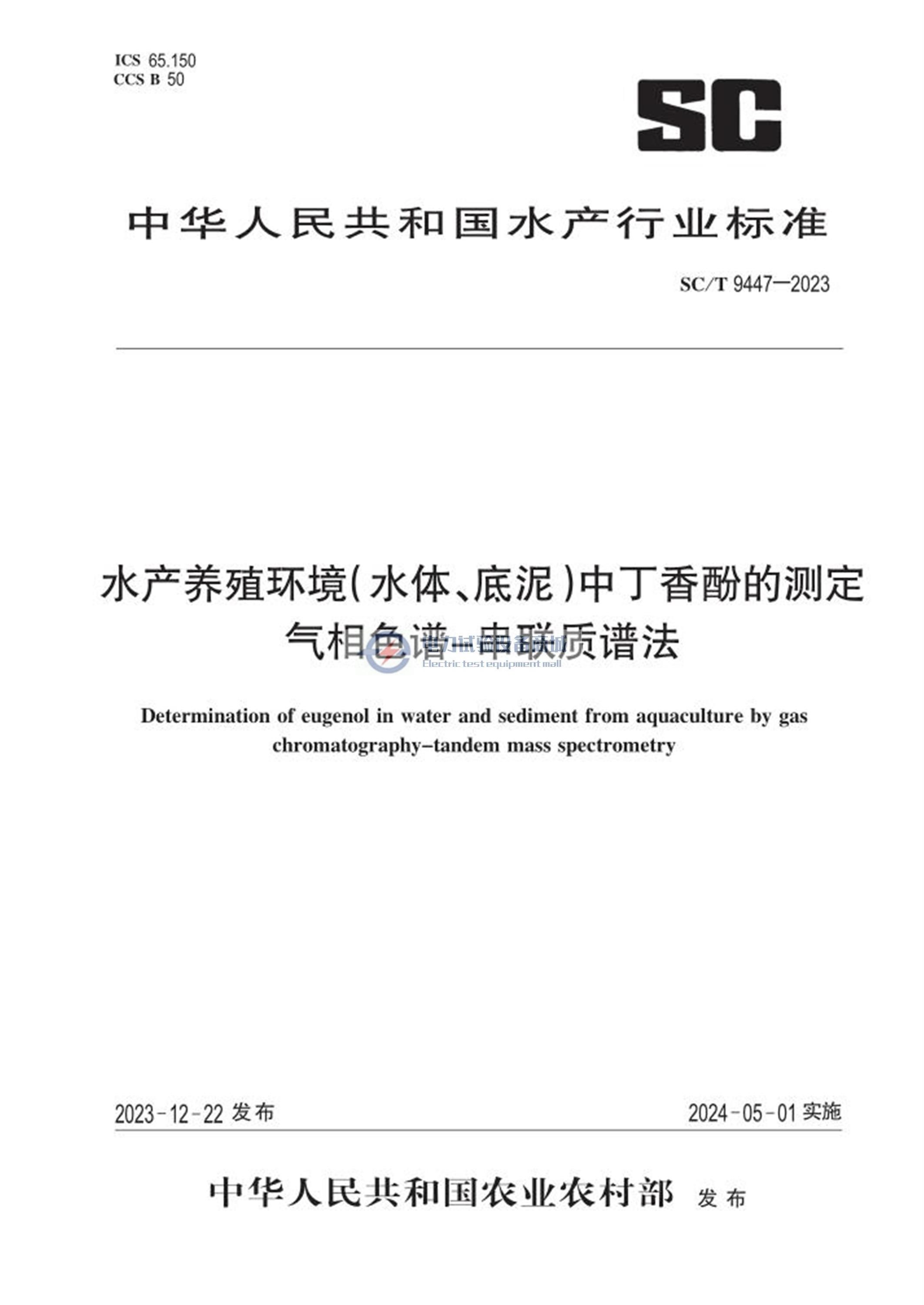 SC/T 9447-2023 水产养殖环境(水体、底泥)中丁香酚的测定 气相色谱-串联质谱法