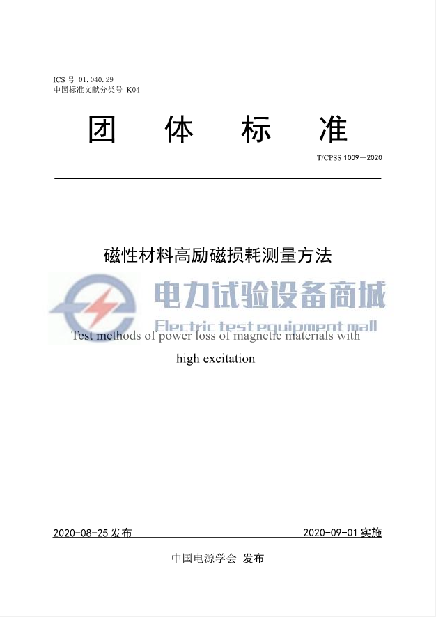 T/CPSS 1009-2020 磁性材料高励磁损耗测量方法