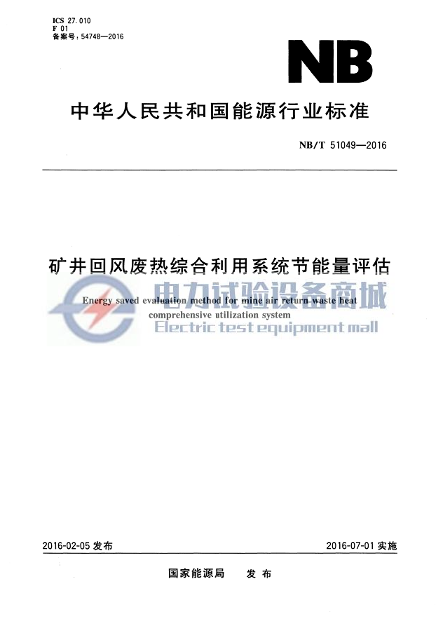 NB∕T 51049-2016 矿井回风废热综合利用系统节能量评估