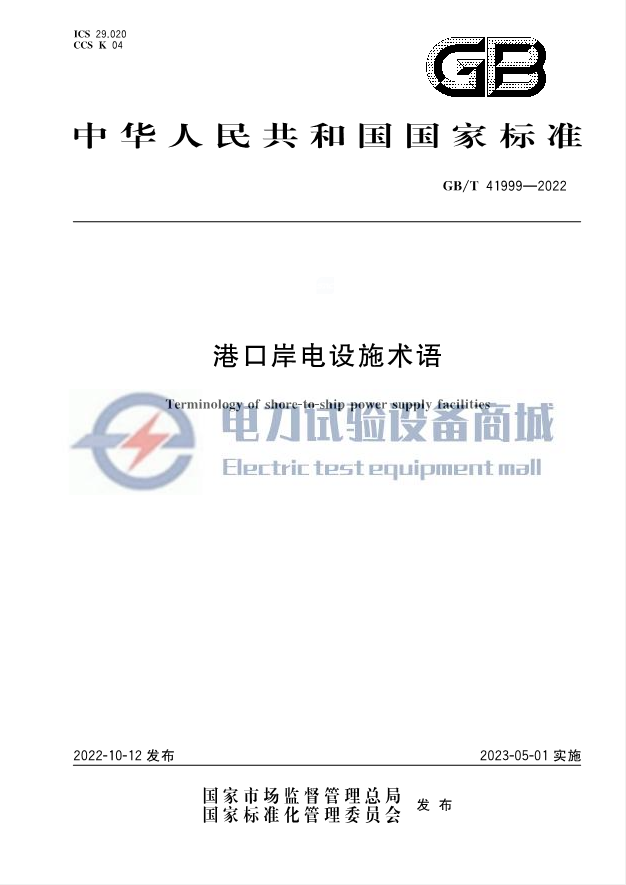 GB/T 41999-2022 港口岸电设施术语